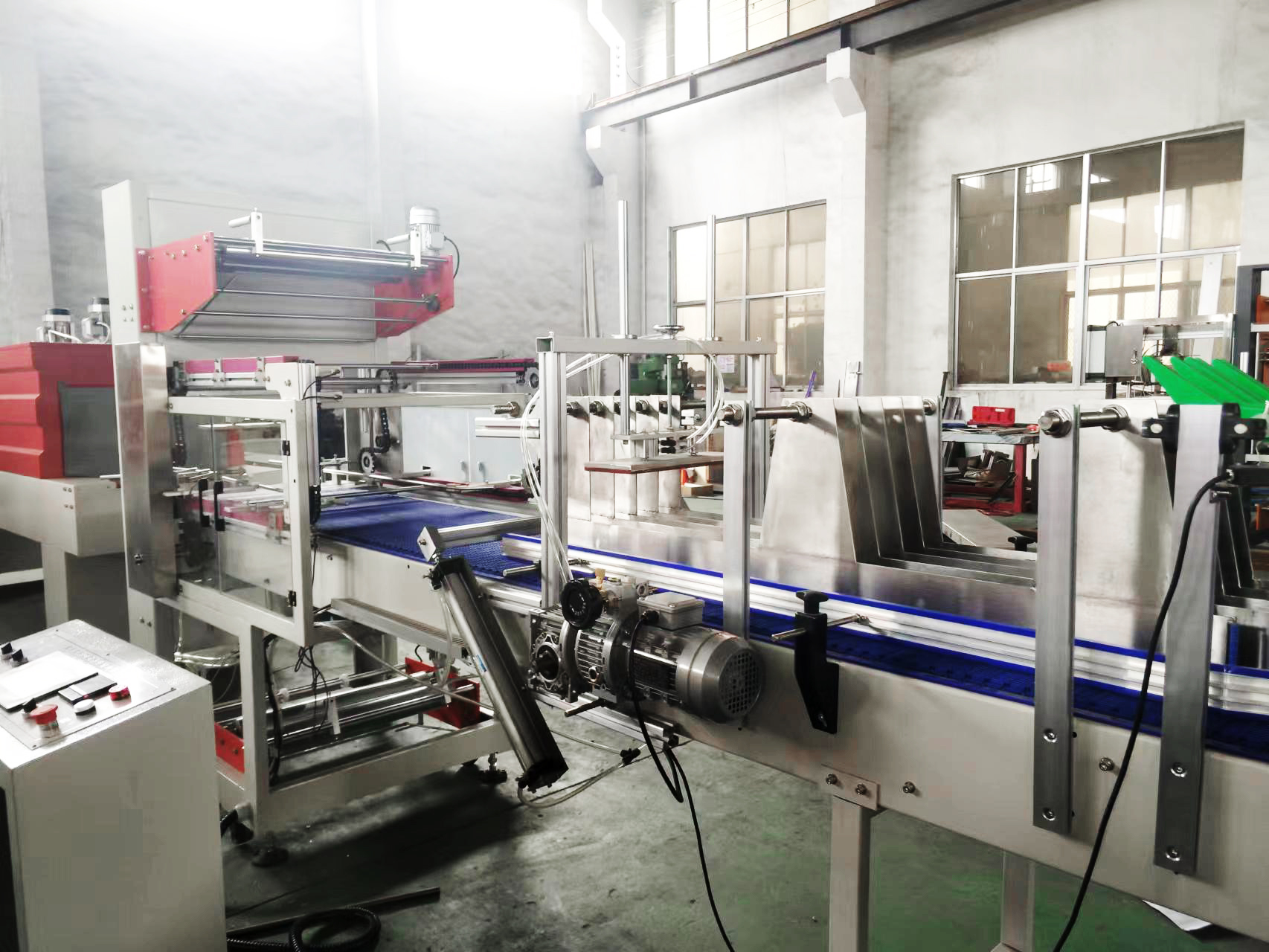 熱收縮包裝機(jī)是基于包裝膜受熱收縮的特性而設(shè)計(jì)制造的高效率、連續(xù)作業(yè)的全新包裝設(shè)備,它可將單個(gè)PET飲料瓶或其它類似物品自動(dòng)排列、集合成組、然后用收縮膜進(jìn)行包裹,后經(jīng)加熱收縮、冷卻定型形成集合包裝,包裝后的產(chǎn)品捆綁牢固,外型規(guī)整、美觀,開啟方便。因此被廣泛應(yīng)用于食品、藥品、化工及其它輕工產(chǎn)品等行業(yè)。