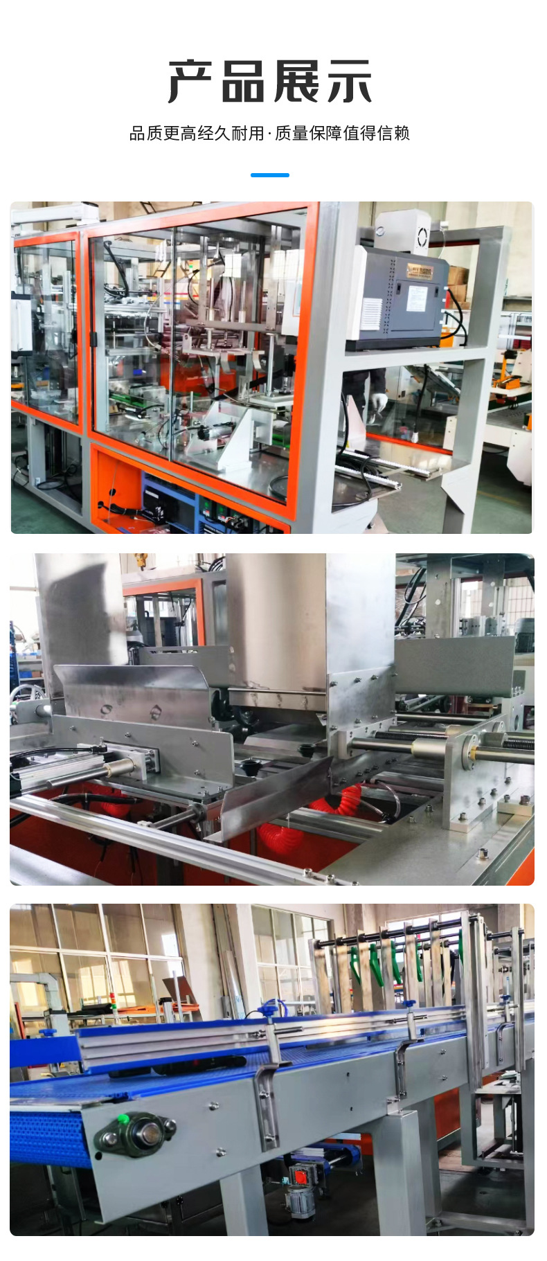 張家港市盛世德包裝機械有限公司生產(chǎn)的熱收縮膜包裝機、套標(biāo)機、純凈水飲料生產(chǎn)線、輸送線、裝箱機、碼垛機等。